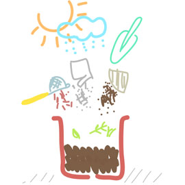 つまり、土とコーヒーの割合は、適当でいいのです。